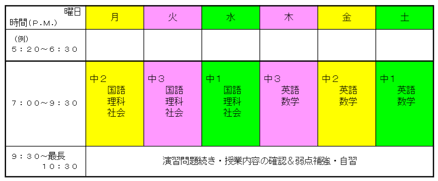 ※中3年生は2学期からの日曜日(1:20P.M.~5:10P.M.)に入試対策講座をおこないます。